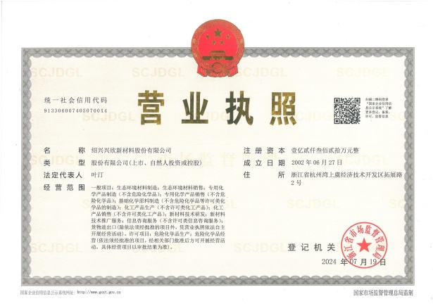 紹興興欣新材料股份有限公司成立于2002年06月27日,占地面積122畝,位于杭州灣上虞經(jīng)濟(jì)技術(shù)開(kāi)發(fā)區(qū)拓展路2號(hào),現(xiàn)有職工200余人,專(zhuān)業(yè)技術(shù)人員50余人;博士、碩士研究生30余人組成的一支知識(shí)型、專(zhuān)業(yè)化的技術(shù)科研團(tuán)隊(duì)。公司面向全球市場(chǎng),專(zhuān)業(yè)開(kāi)發(fā)電子化學(xué)品、環(huán)保化學(xué)品、醫(yī)藥中間體、高分子材料等先進(jìn)新材料重點(diǎn)領(lǐng)域的省級(jí)科技型企業(yè);建有浙江上虞、安徽東至兩個(gè)生產(chǎn)基地。目前為“國(guó)家高新技術(shù)企業(yè)”、浙江省“隱形冠軍”企業(yè)、浙江省專(zhuān)精特新中小企業(yè);建有“省級(jí)”研究開(kāi)發(fā)中心,共建天津大學(xué)浙江紹興研究院電子化學(xué)品研發(fā)中心。